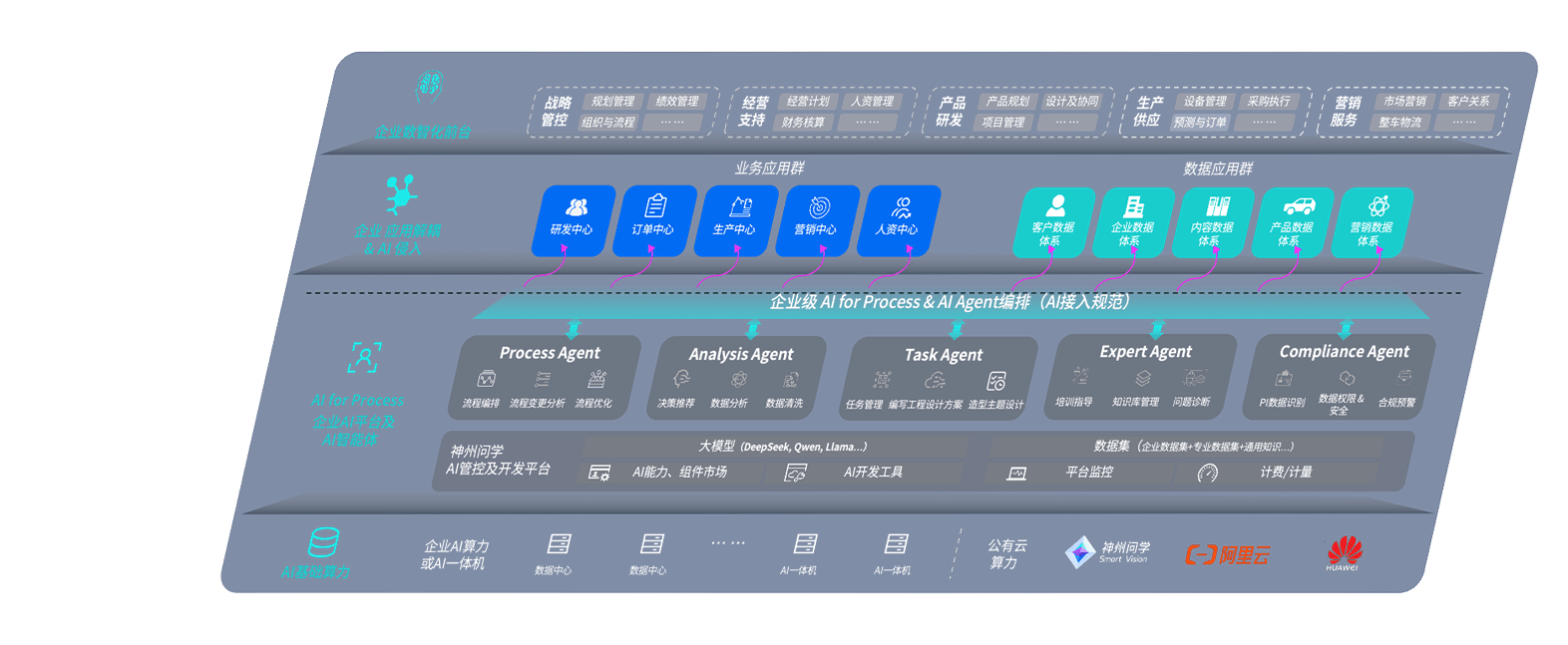 端到端的一站式AI工作空间深度融合了从企业战略规划到日常经营的全流程业务板块,,,,定向解决车企内部领域多、、、、部门多、、、链条长、、、、场景碎片化等难题,,支持车企快速构建以AI为核心的生产力写作体系,,实现任务执行与AI能力的无缝集成与交互